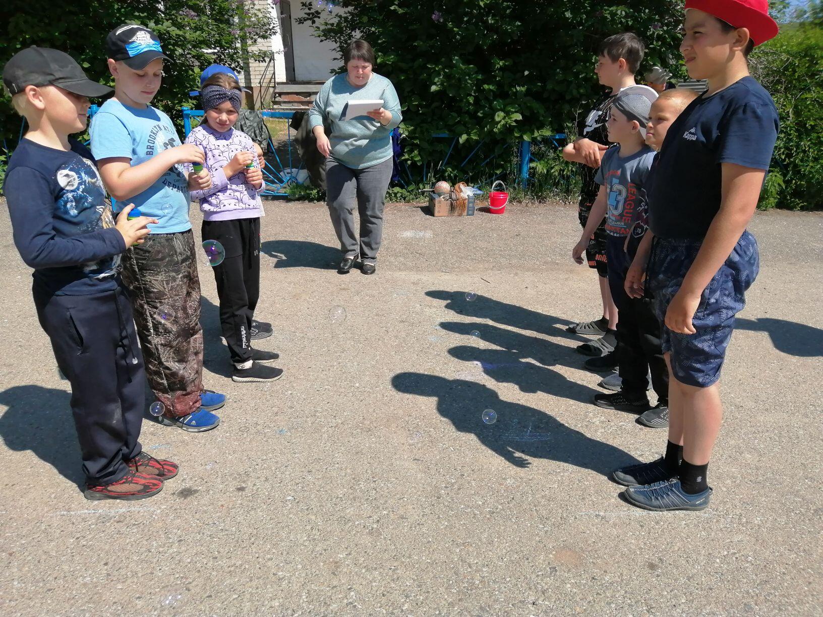 Разделившись на две команды «Гром» и «Молния», ребята участвовали в эстафетах и конкурсах. Самые смелые и ловкие участники проявили свои умения и знания во всех игровых и спортивных конкурсах. Ребята играли в такие игры, как: «Попади в цель», «Прыжки в мешках», «Под колпаком», «Пингвин», «Моментальное фото», «Конкурс рисунков», «Быстрый художник», «Цветы», «Лети мыльный пузырь через верёвочку», «У кого мыльный пузырь больше».